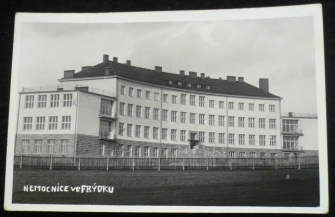 Frýdek-Místek, fotopohlednice, nemocnice, prošlá, stržená známka, Q2