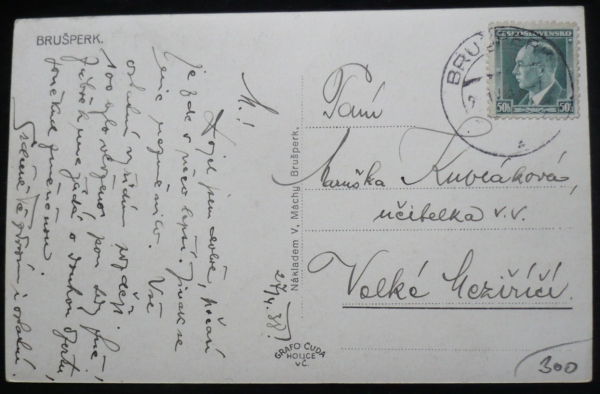 Brušperk, fotopohlednice, celkový pohled, prošlá, Q1