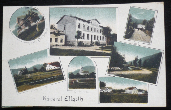 Komorní Lhotka (Kameral Ellgoth), 7okénková, vila, restaurace, pošta, kostel, nepoužitá, Q2 - stopy po nalepení