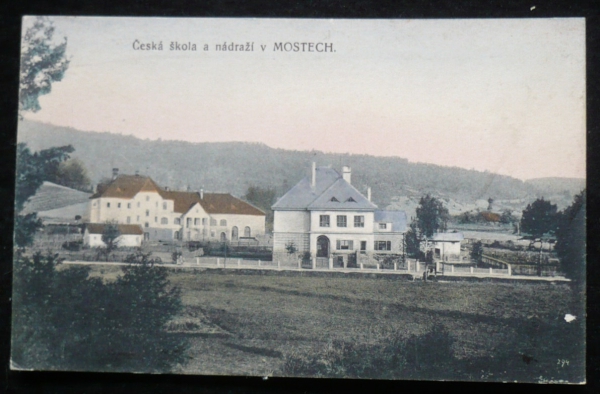 Mosty u Jablunkova, nádraží, škola, nepoužitá, Q2 - stopy po nalepení