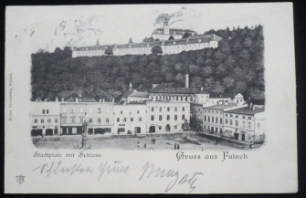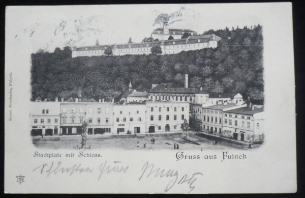 Fulnek, náměstí, pohled na zámek, dlouhá adresa, prošlá, Q2