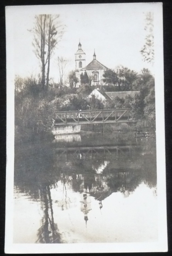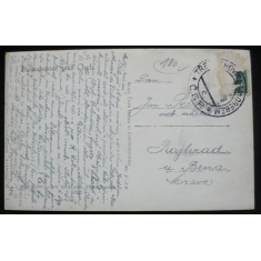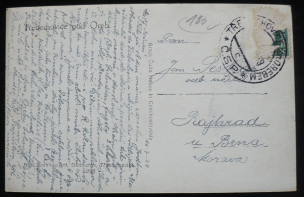 Třebechovice pod Orebem, fotopohlednice, pohled ke kostelu, prošlá, stržená známka, Q2