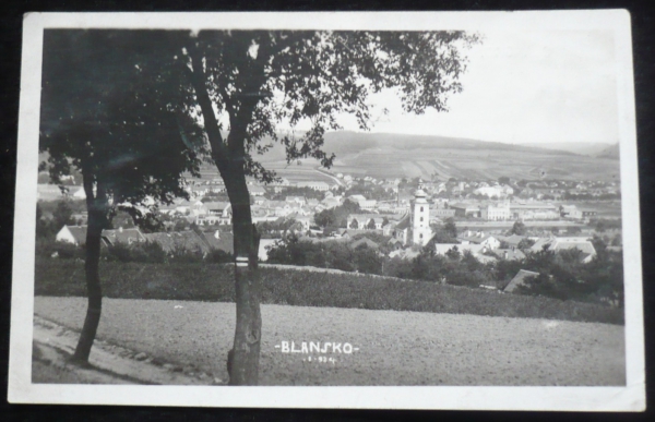 Blansko, fotopohlednice, celkový pohled, prošlá, Q2