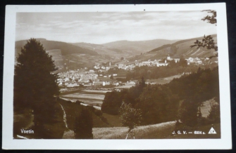 Vsetín, fotopohlednice, celkový pohled, prošlá, Q1
