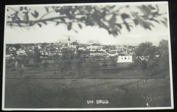Uherský Brod, fotopohlednice, celkový pohled, prošlá, Q1