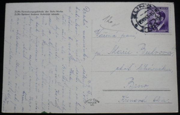 Zlín, fotopohlednice, správní budova Baťových závodů, prošlá, Q1