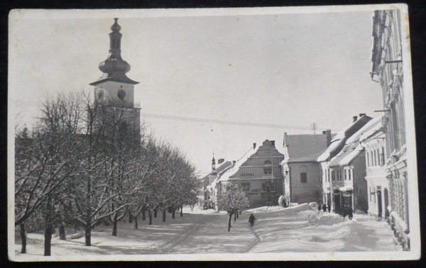 Nové Město na Moravě, fotopohlednice, pohled do ulice, prošlá, Q2