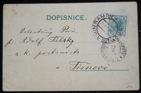 celkový pohled, litografie, prošlá, dlouhá adresa, Q3 - poškozený roh