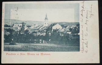 Nové Město na Moravě, celkový pohled, prošlá, dlouhá adresa, stržená známka, Q2