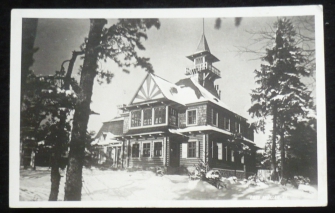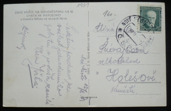 Nové Město na Moravě, fotopohlednice, chata na Harusově kopci, prošlá, Q1
