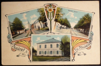 Velké Prosenice, 3okénková, škola, náves, prošlá, Q2