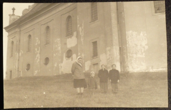 Bruntál, fotopohlednice, lídé před kostelem na Uhlířském vrchu, bez adresních linek, neprošlá, Q1