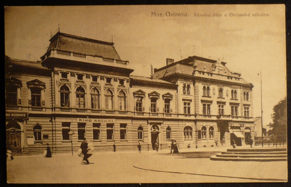 Ostrava, Národní dům a Občanská záložna, prošlá, stržená známka, Q2