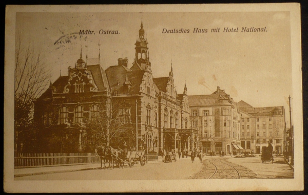 Ostrava, pohled do ulice, Německý dům, hotel National, prošlá, Q2