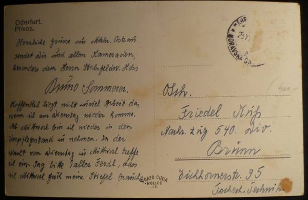 Přívoz, fotopohlednice, celkový pohled, prošlá, stržená známka, Q2