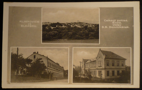 Klimkovice, 3okénková, fotopohlednice, škola, ústav, celkový pohled, nepoužitá, Q2