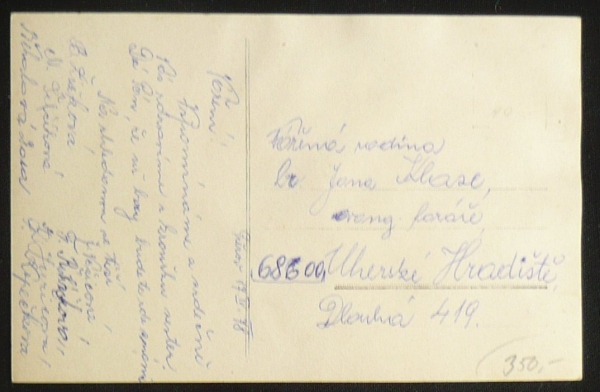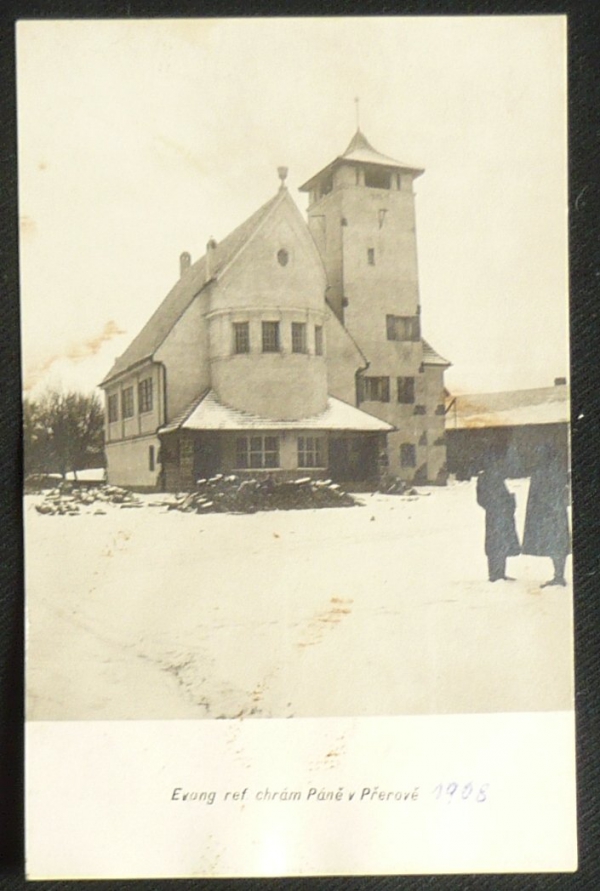 Přerov, kostel, fotopohlednice, prošlá, stržená známka, Q2
