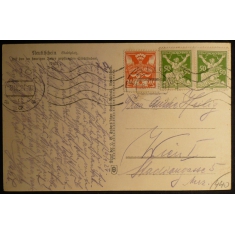 koláž "čtyřlístek", litografie, prošlá, dlouhá adresa, Q2