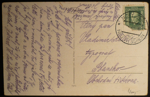 koláž "čtyřlístek", litografie, prošlá, dlouhá adresa, Q2