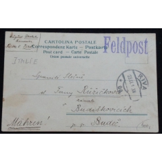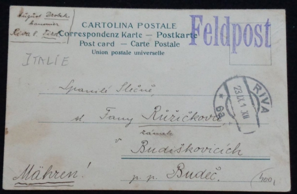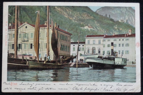 Riva, lodě v přístavu, prošlá, dlouhá adresa, polní pošta, Q3 - poškozený roh
