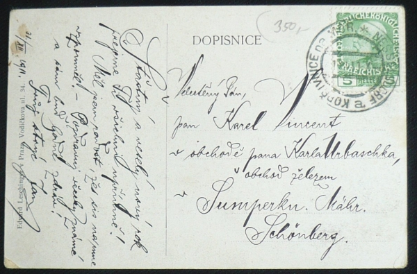 koláž "čtyřlístek", litografie, prošlá, dlouhá adresa, Q2