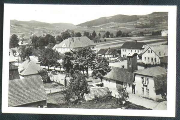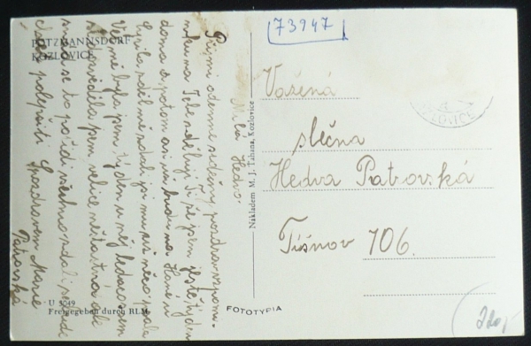 Kozlovice, fotopohlednice, celkový pohled, prošlá, stržená známka, Q2