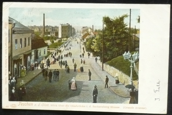 Český Těšín (Teschen), pohled do ulice, dlouhá adresa, prošlá, Q2