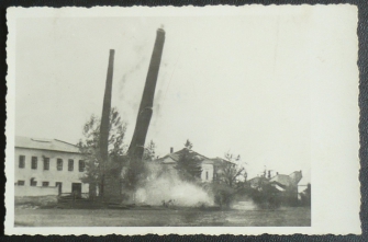 Vyškov, fotopohlednice, odstřel komínu, nepoužitá, Q2