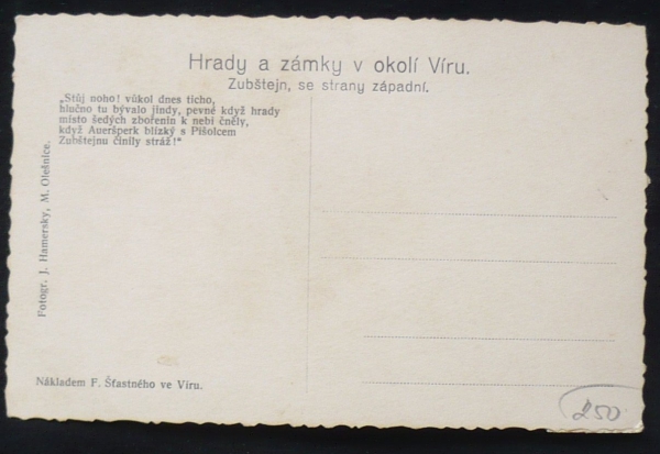 Zubštejn, fotopohlednice, nepoužitá, Q2