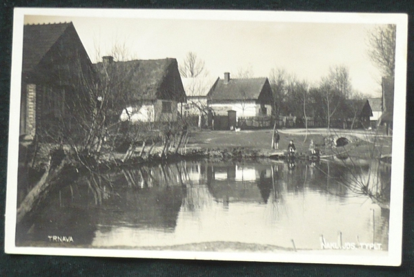 Trnava, fotopohlednice, domky, prošlá, poškozená známka, Q2