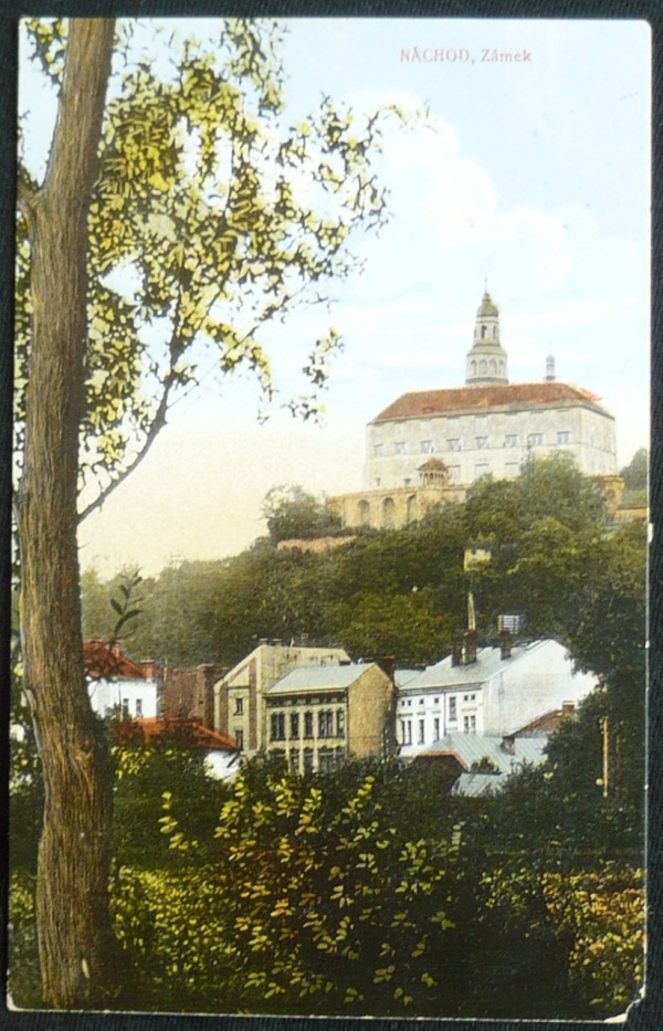 Náchod, zámek, prošlá, stržená známka, Q2