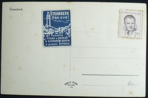 Štramberk, fotopohlednice, pohled k Trúbě, neprošlá, Q2