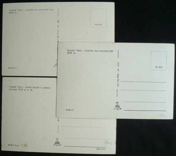 Lomnický štít, sestava 3ks fotopohlednic lanovky, nepoužité,Q2
