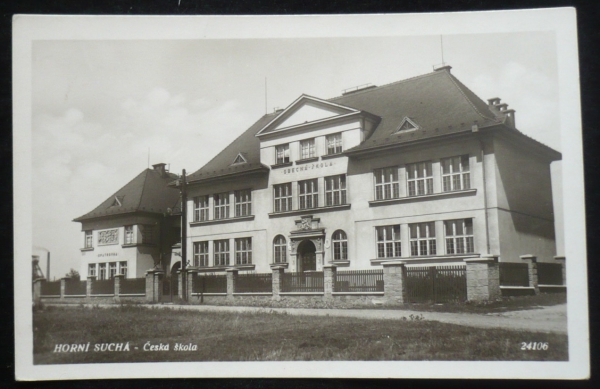 Horní Suchá, fotopohlednice, škola, nepoužitá, Q2