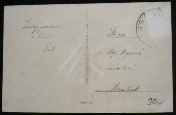 Orlová, pohled do ulice, prošlá, stržená známka, Q2