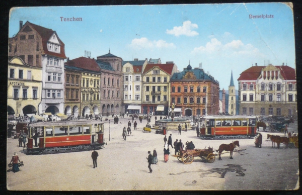 Český Těšín (Teschen), náměstí, tramvaj, prošlá, Q3 lom
