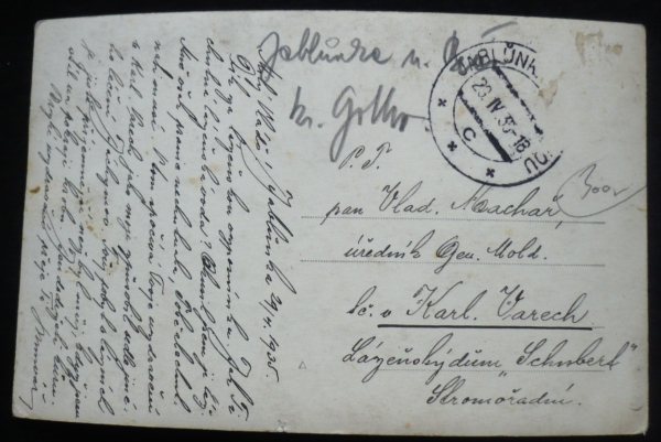 Jablůnka, fotopohlednice, celkový pohled, prošlá, stržená známka, Q3 pošpiněná, rohy