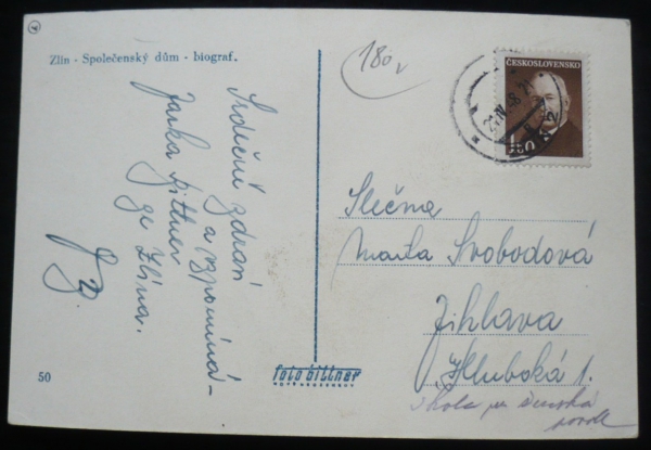 Zlín, fotopohlednice, společenský dům, prošlá, Q2