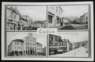 Čadca, 4okénková fotopohlednice, pohled do ulice, náměstí, radnice, nepoužitá, Q2