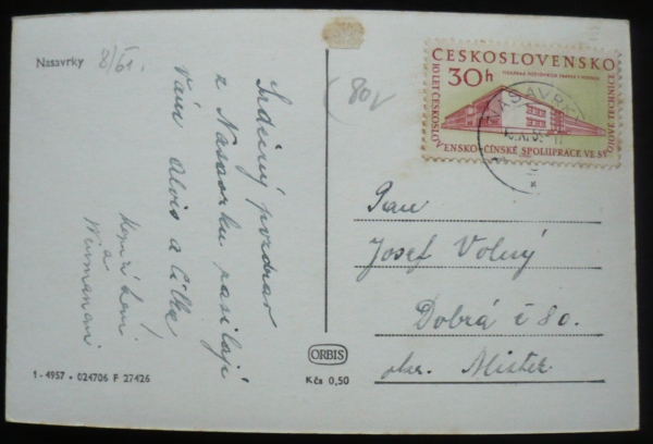 Nasavrky, fotopohlednice, celkový pohled, ORBIS, prošlá, Q2