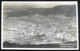 Prachatice, fotopohlednice, celkový pohled, prošlá, Q2