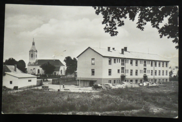 Snina, fotopohlednice, pohled ke kostelu, prošlá, Q3 - poškozený obraz