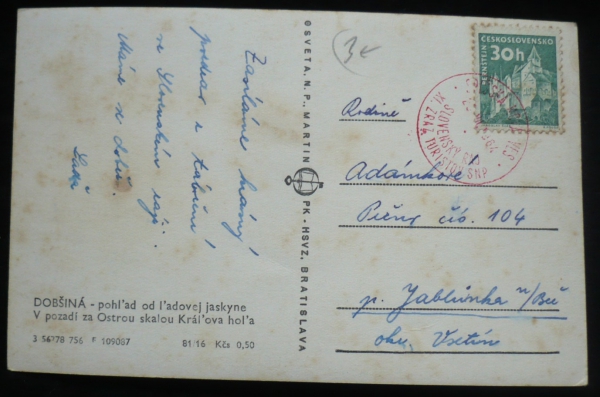 Dobšiná, fotopohlednice, celkový pohled, prošlá, Q2