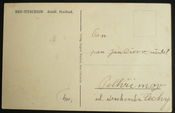 Nový Jičín (Neu Titschein), koupaliště, prošlá, bez známky, lehký lom, Q2