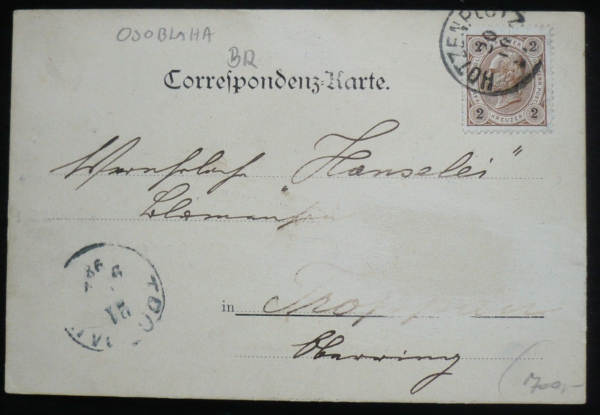 Osoblaha, karikatura vláčku, dlouhá adresa, prošlá, Q2