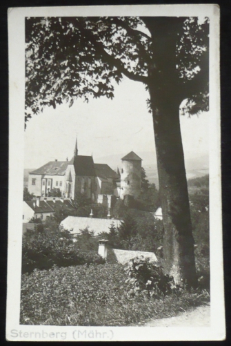 Šternberk (Sternberg), fotopohlednice, prošlá, stržená známka, Q2