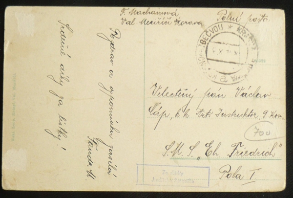 Krásno nad Bečvou, pohled do ulice, polní pošta, prošlá, Q2