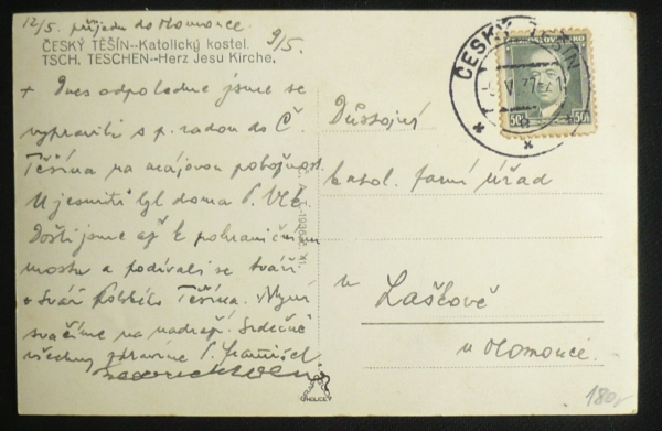 Český Těšín (Teschen), kostel, fotopohlednice, prošlá, Q2