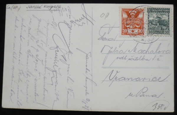 Jánské Koupele, fotopohlednice, lázeňský dům, prošlá, Q2