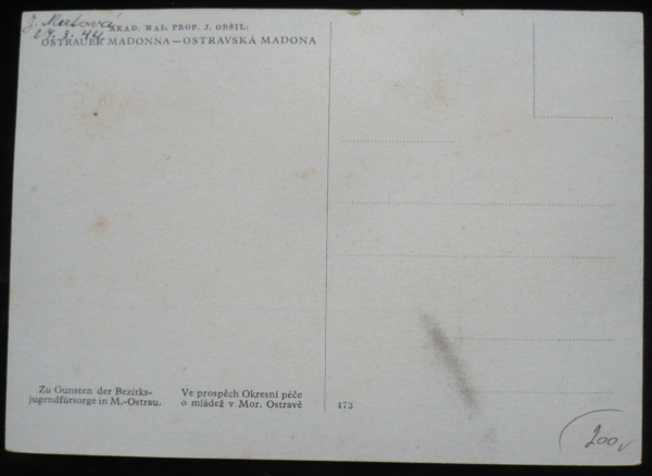 Ostrava, ostravská madona, malíř J. Obšil, nepoužitá, Q1